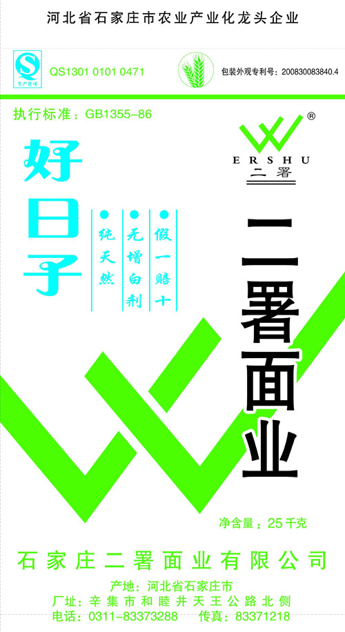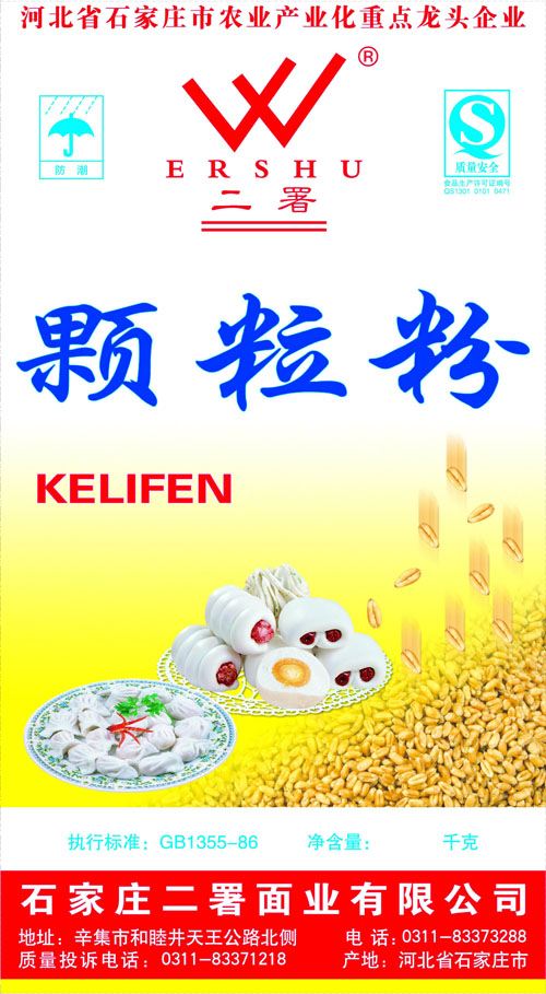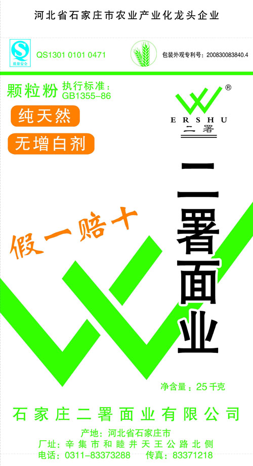 河北面業(yè)         二署面業(yè)有限公司創(chuàng)建于1989年,現(xiàn)已具備日處理小麥300噸的能量,產(chǎn)品質(zhì)量穩(wěn)定,深受客戶青睞。 二署面業(yè)地理位置優(yōu)越,北靠307國道石黃高速,南鄰石德鐵路,衡井國道,交通十分方便,為貨物運(yùn)輸提供保證及時(shí)運(yùn)輸?shù)奶烊粭l件。產(chǎn)品運(yùn)銷:黑龍江、吉林、遼寧、河北、內(nèi)蒙、陜西、山西等大中省份,贏得了廣大消費(fèi)者的認(rèn)可。 河北面業(yè)